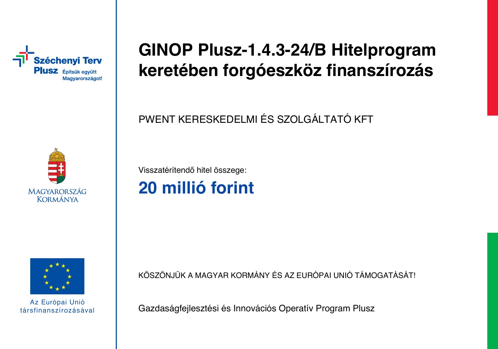Kedvezményezett neve: PWENT Kereskedelmi és Szolgáltató Kft.